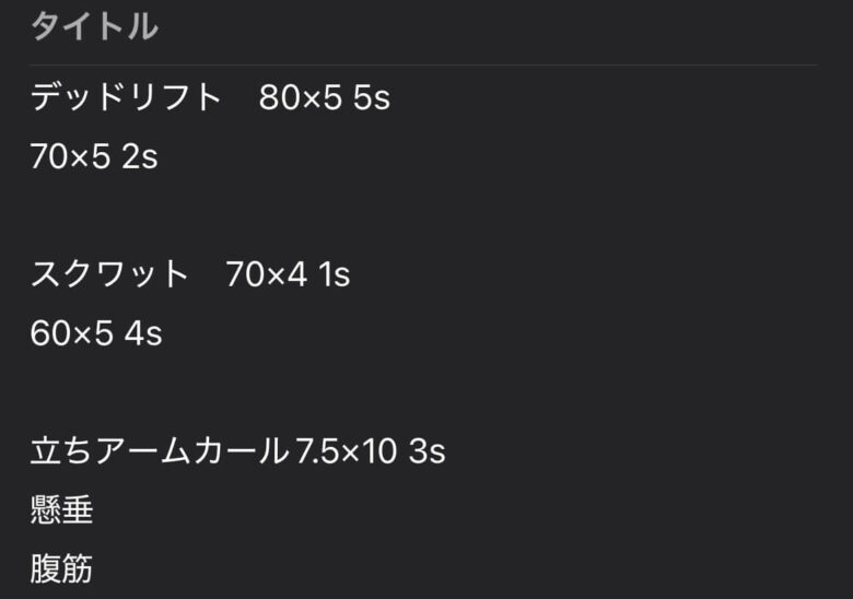 このようにその時感じた感想ベースで記録すると、次回のトレーニングがスムーズに開始できます。